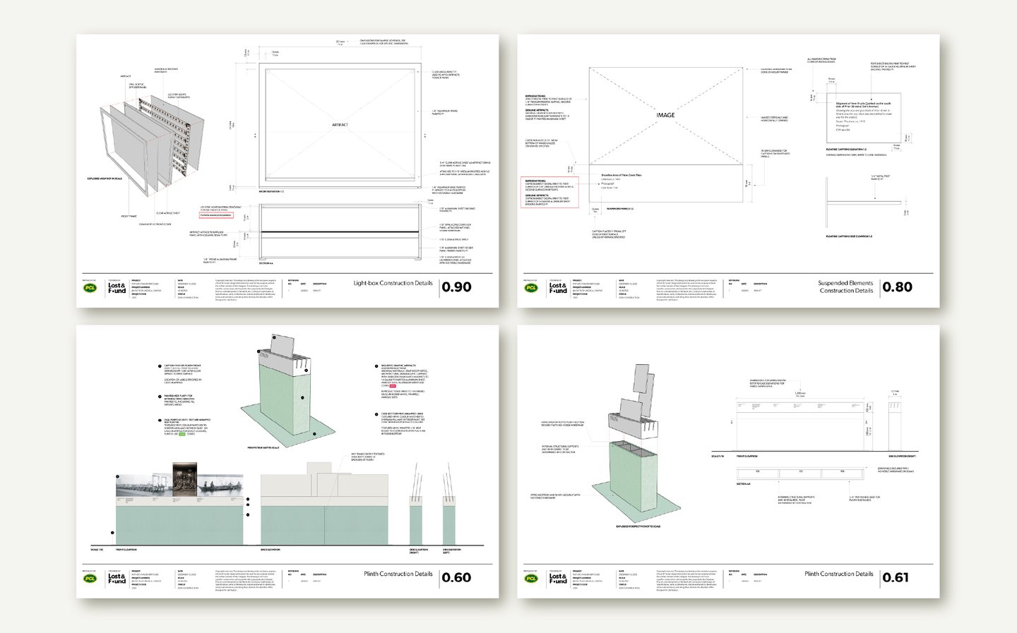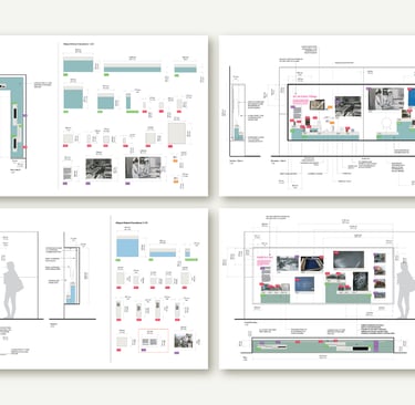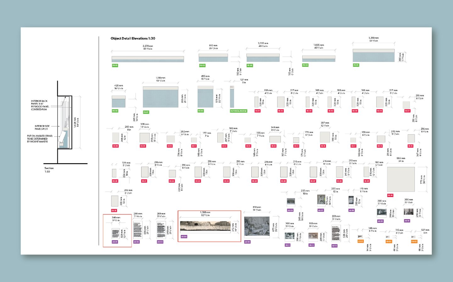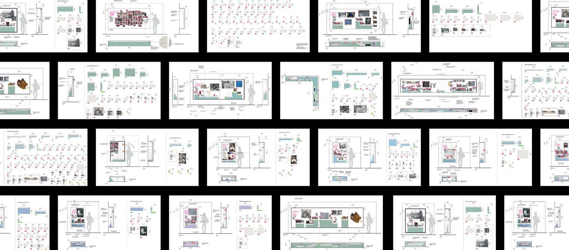 Exhibit layout, typographic design, and archival coordination across a complex, multi-layered project.