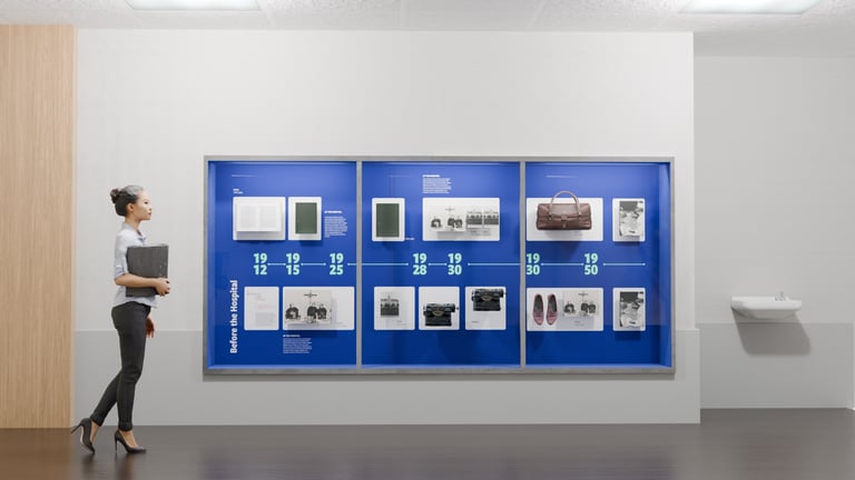 A unifying visual identity developed to connect a series of archival exhibits scattered across the hospital's many floors.