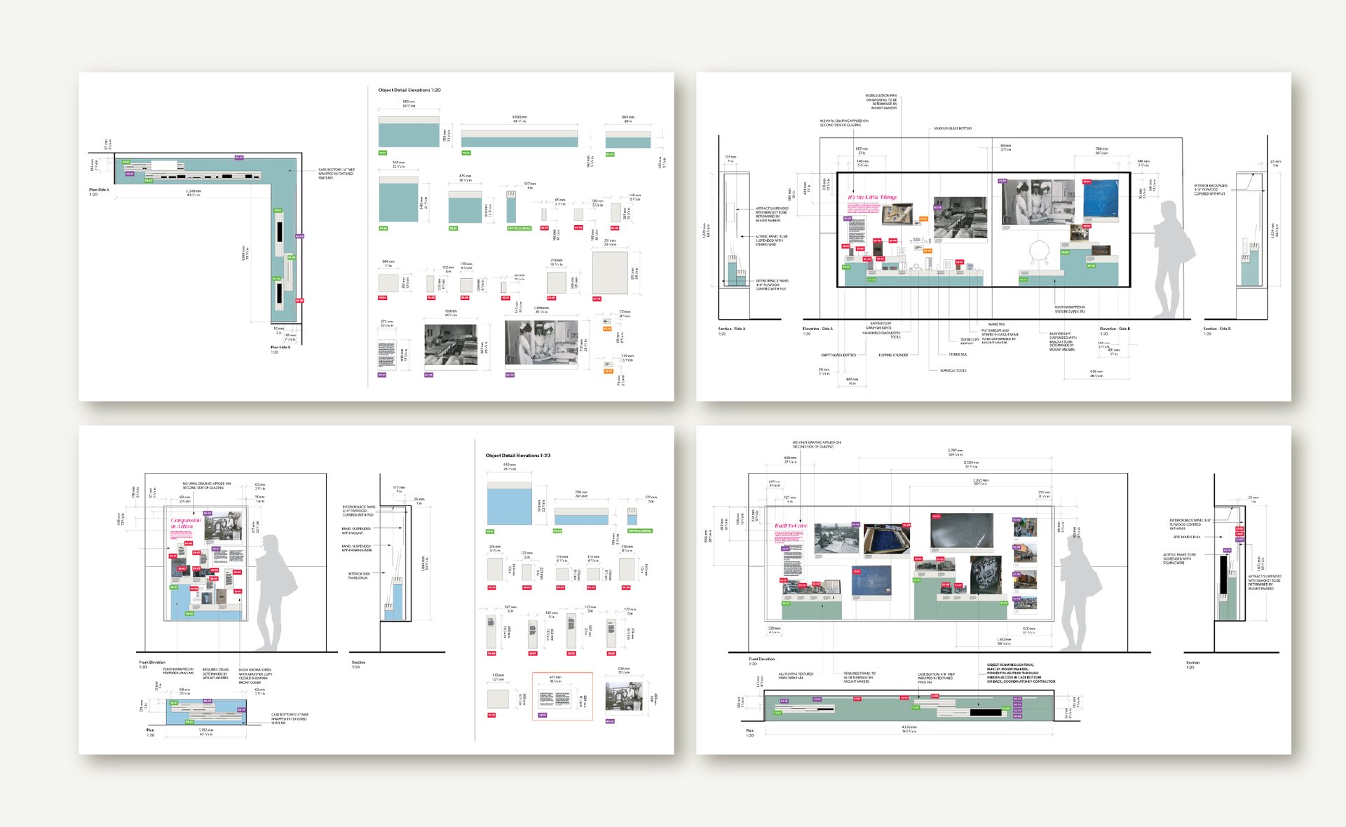 Exhibit layout, typographic design, and archival coordination across a complex, multi-layered project.