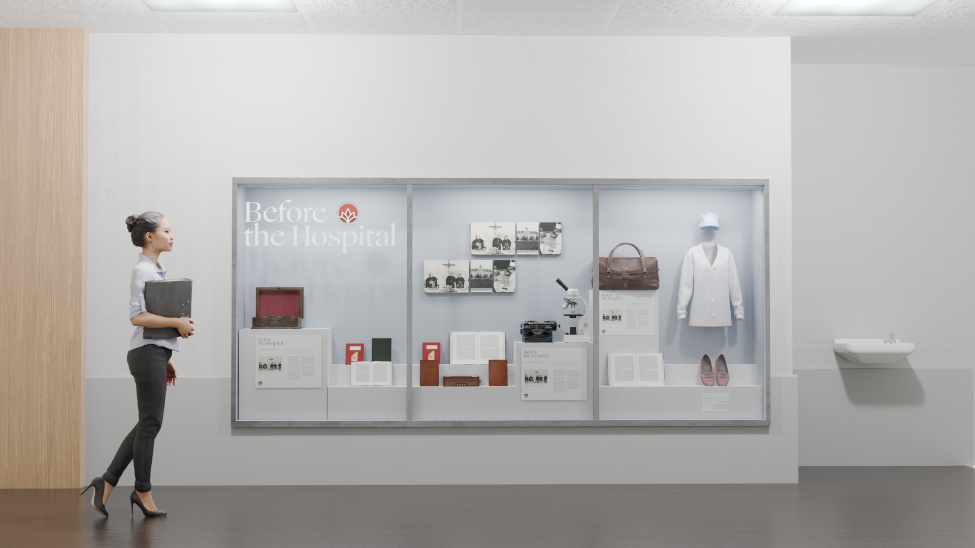 Designing case and wall exhibits for the new St. Paul's Hospital, honouring the history of Providence Health Care and the founding congregations of nursing Sisters. Spanning 13 archival display cases across multiple floors, this project is currently in progress and has been issued for construction and anticipated to be built out alongside the new hospital.